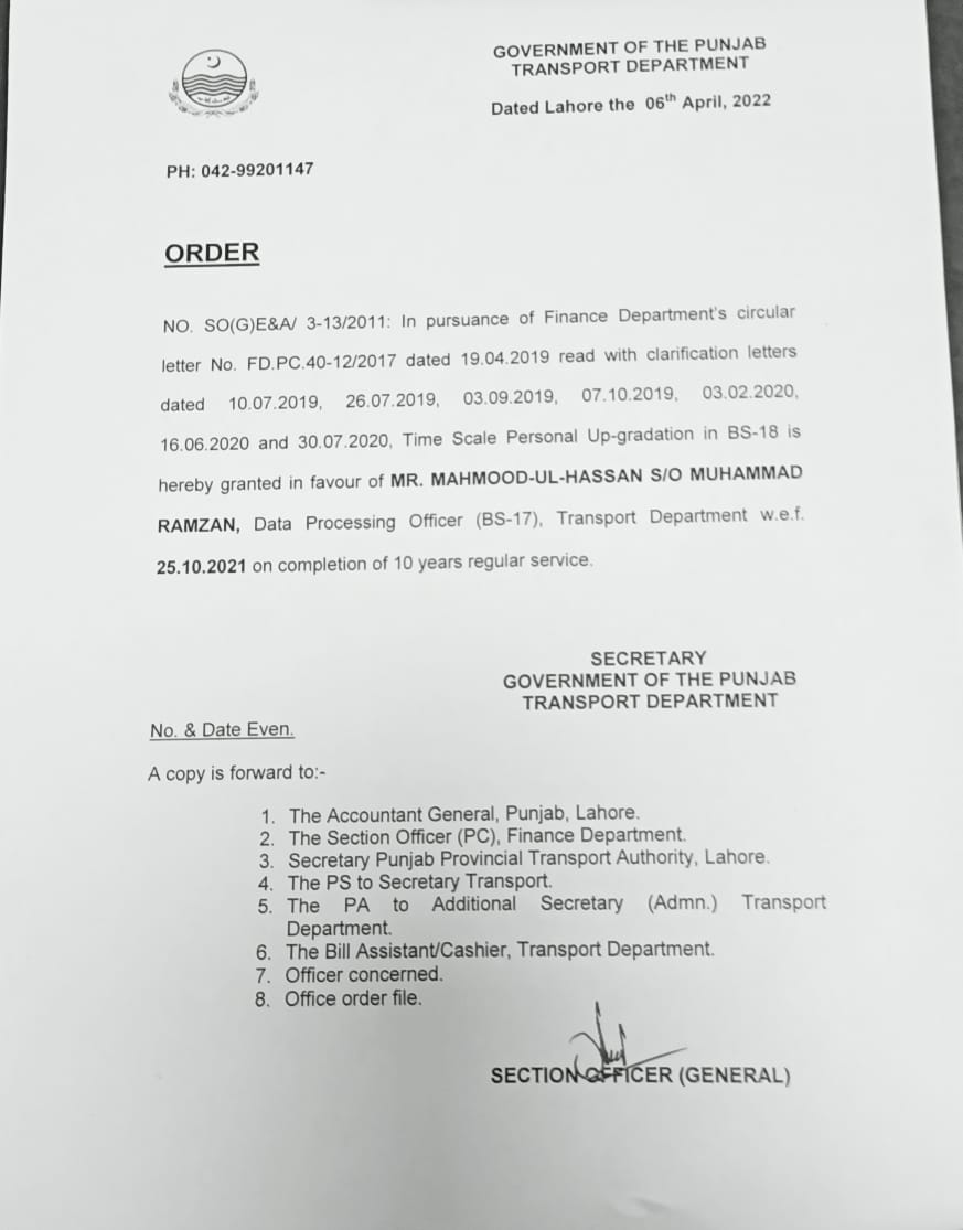 | 06 اپریل 2022 کو پروموشن سے متعلق نوٹیفکیشن کا نوٹیفکیشن |