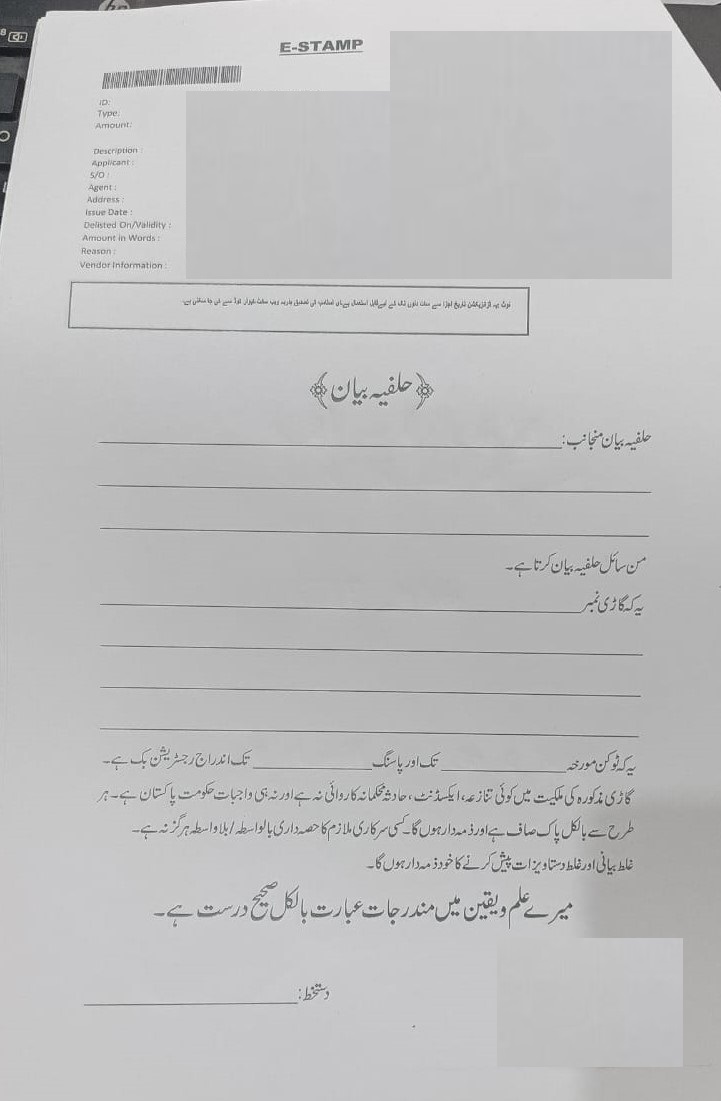 • بیانِ حلفی (نمونہ کے طورپر)