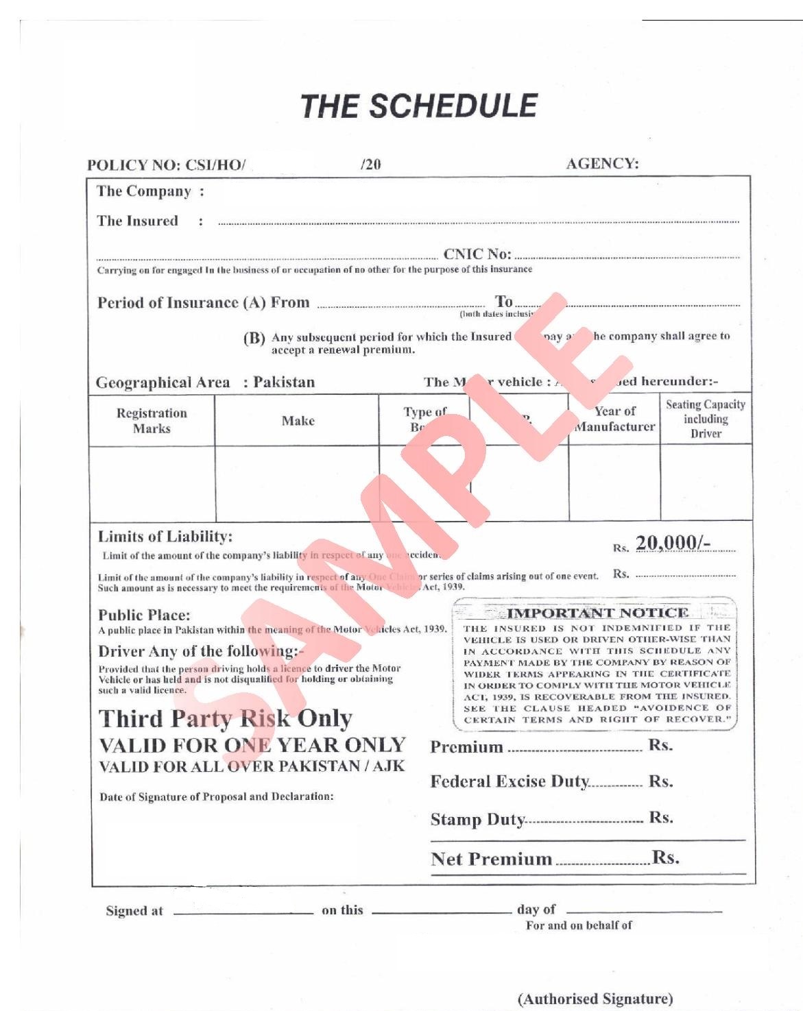 • تھرڈ پارٹی رِسک انشورنس (نمونہ کے طور پر)